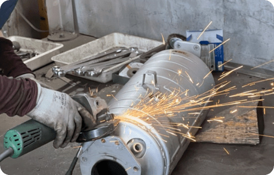 組み上げた製品をグラインダーやバフを使用し表面の汚れ、錆びを徹底的に磨き上げる