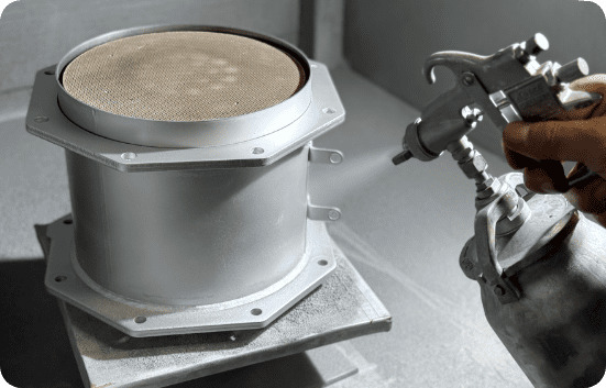 完成時には見えない遮熱板の内側まで全て耐熱塗装を施す